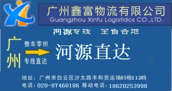 广州到河源物流专线是鑫富物流广广州发往河源货运的分散线路,很多广东珠三角客户的零担货物通过鑫富短途运输车辆,把货物从各地级市运输到广州,在广州装车到河源,在广州到河源的货运公司中,鑫富是一家经营时间长久,资历老道的品牌货运公司,在整车运输上,还没有鑫富调不到的车,我们以最先进的服务理念为广大货主服务。