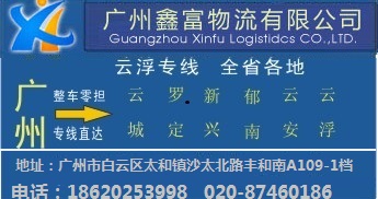欢迎来电咨询广州到云浮货运公司,每天发车,提供门到门服务,让您发货更容易。鑫富物流可将您的货物运送至云浮全市:云城区(云城街道) 罗定市(罗城街道) 新兴县(新城镇) 郁南县(都城镇) 云安县(六都镇)。我们专业的物流团队将帮您策划广州到云浮物流专线最高效、最合理、最实惠的物流配送方案。确保您的货物更快速、最安全地到达。在众多的广州至云浮物流公司中,鑫富物流是你最佳的选择!